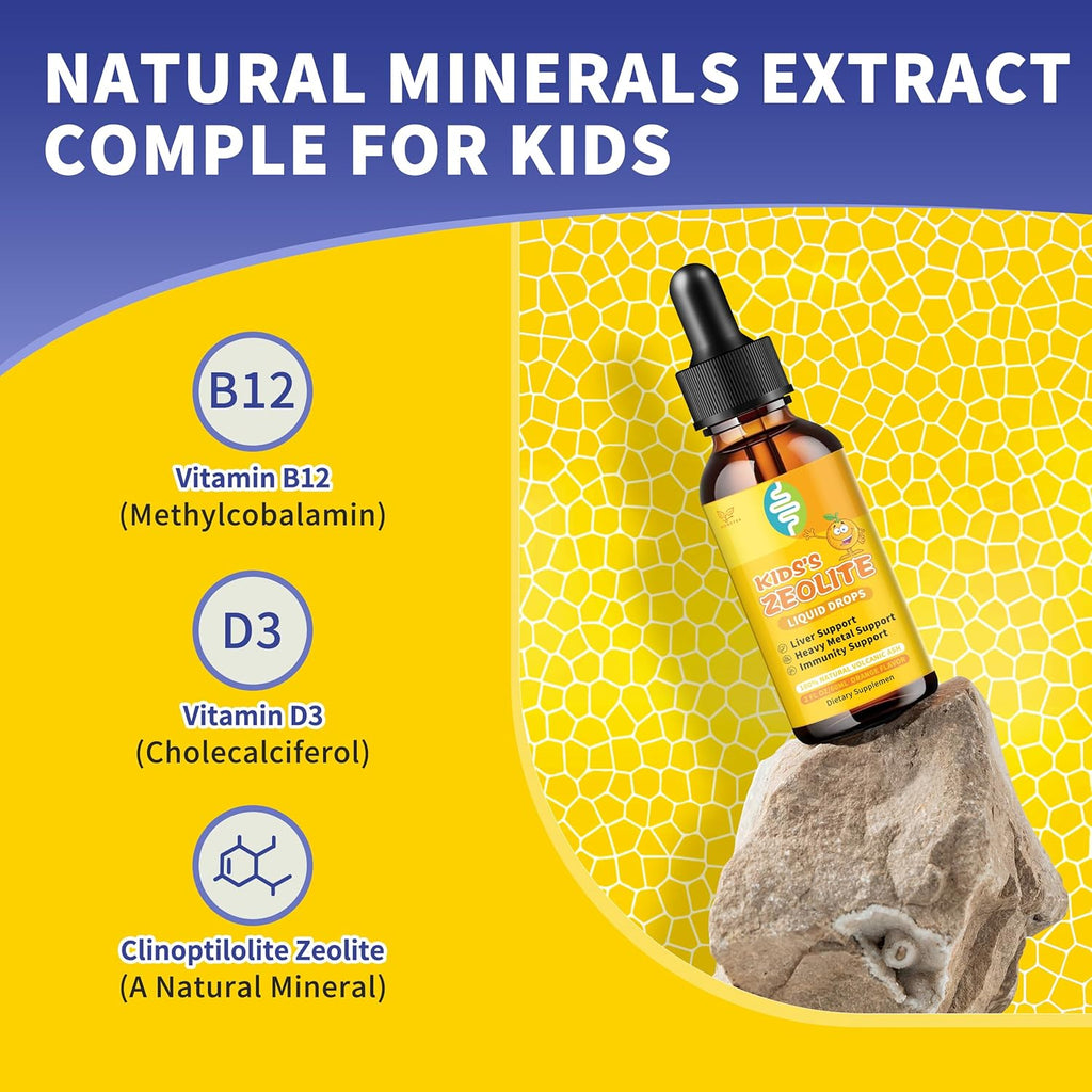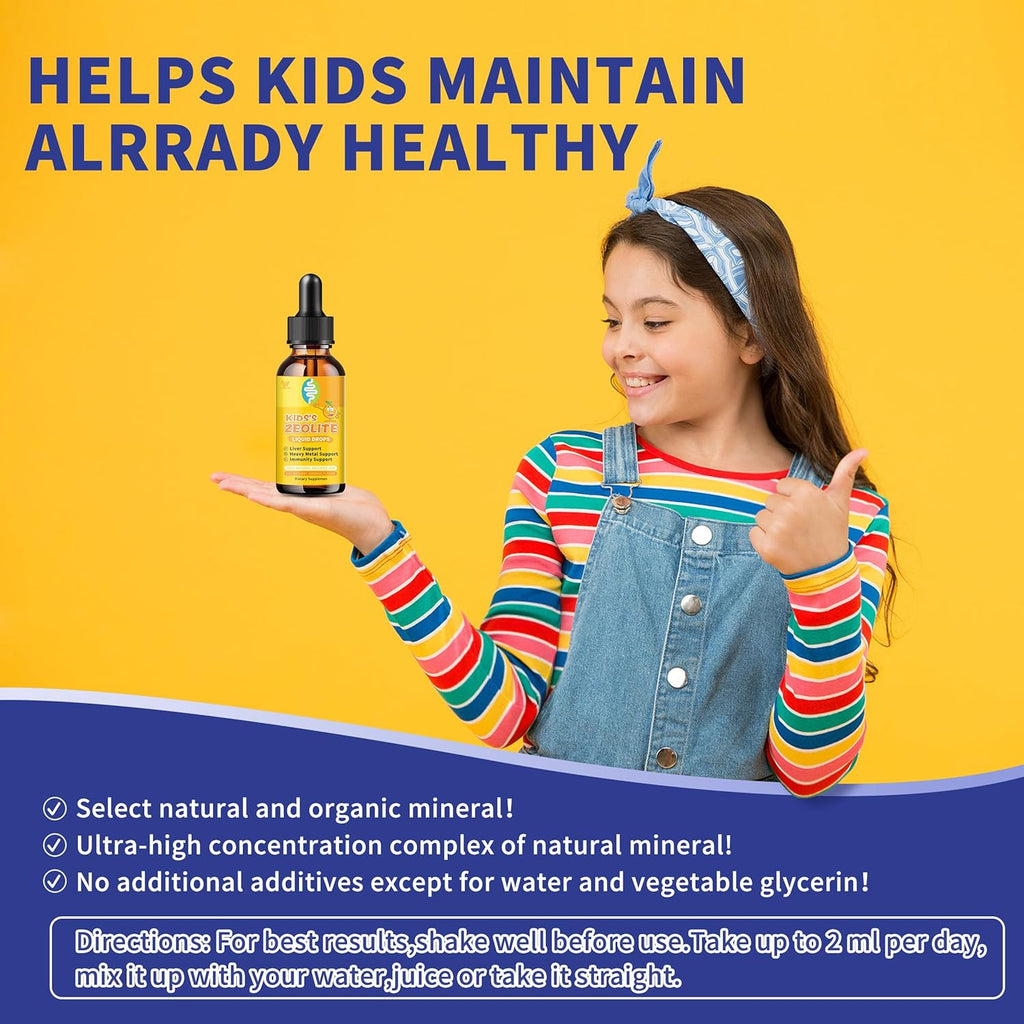 - Kids Zeolite - As parents, we understand the importance of supporting your child's development. Our formula combines essential vitamins to provide your child with the nutrients they need as they develop. This energizing blend helps promote overall wellness and supports your child's natural energy and vitality, allowing them to play and explore freely.