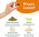 Hemp Seed Powder 400 mg AlaskOmega® Fish Oil 250 mg Total Omega 3 Fatty Acids 145 mg Eicosapentaenoic Acid (EPA) 80 mg Docosahexaenoic Acid 25 mg (DHA) DHAgold® (Schizochytrium sp. algae) 100 mg Hemp Seed Oil 240 mg Cod Liver Oil 40 mg Ascorbic Acid (Vitamin C) 23 mg D-Alpha Tocopherol (Vitamin E) 20 IU Zinc 1 mg Biotin 2 mcg